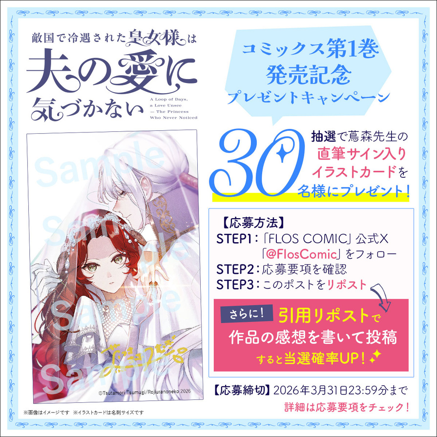 当選者へのみ2026年4月7日頃、X(Twitter)のDM(ダイレクトメッセージ)にて「@FlosComic」よりお知らせします。