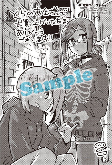 特典情報 2022.11.25 『忍者と殺し屋のふたりぐらし(2)』特典情報 忍者と殺し屋のふたりぐらし(2) 著者:ハンバーガー 試し読み シリーズ詳細 忍びの里から抜け出した世間知らずのくノ一さとこと凄腕の女子高生殺し屋このは。ふたりの共同生活はなんだかんだでほっこり幸せ?でも、今日も殺しの依頼はきっちり完遂★読後の情緒に注意!? 話題のダークコメディ第2巻!! 発売日 2022年11月25日 定価 759円(本体690円+税) サイズ B6判 購入はこちら もっと見る 特典情報 アニメイト ブロマイド ゲーマーズ 4Pリーフレット とらのあな イラストカード メロンブックス イラストカード COMIC ZIN イラストカード 関連書籍 忍者と殺し屋のふたりぐらし(2) 著者:ハンバーガー 発売日 2022年11月25日 定価 759円(本体690円+税) サイズ B6判 試し読み 詳細を見る