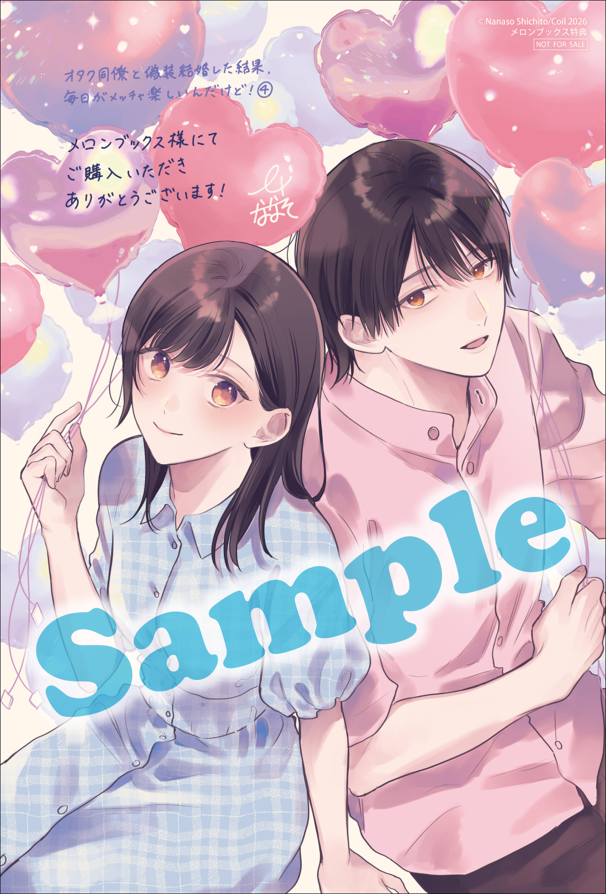 特典情報 2026.02.20 『オタク同僚と偽装結婚した結果、毎日がメッチャ楽しいんだけど!(4)』特典情報 オタク同僚と偽装結婚した結果、毎日がメッチャ楽しいんだけど!(4) 著者:七十 ななそ 原作:コイル キャラクター原案:雪子 試し読み オタク同士、偽装結婚から始まった二人の結婚生活。想像どおり快適で。想像以上に楽しくて。今まで知らなかった相手のことも、自分のことも知ることができて。だからこの関係はここまで。これからは―――。同人女子とドルオタ男子の偽装結婚生活、第4巻!! 発売日 2026年02月27日 定価 935円(本体850円+税) サイズ A5判 購入はこちら もっと見る 特典情報 アニメイト 複製ミニ色紙 メロンブックス イラストカード 関連書籍 オタク同僚と偽装結婚した結果、毎日がメッチャ楽しいんだけど!(4) 著者:七十 ななそ 原作:コイル キャラクター原案:雪子 発売日 2026年02月27日 定価 935円(本体850円+税) サイズ A5判 試し読み 詳細を見る
